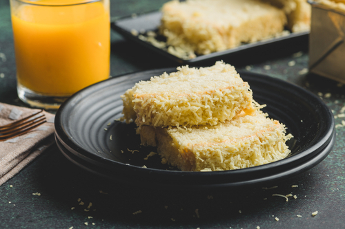 The inipit cake sandwich is a sponge layer that cradles luscious custard or cream cheese fillings. Its allure transcends taste, encompassing a captivating visual appeal. The alternating yellow and white layers entice with charm and flavor.